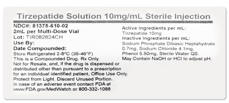 - Delivery of your compounded Tirzepatide injection kit with precise instructions and injection supplies